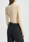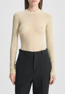 The BITE Long-Sleeve Jersey is our signature first-layer top, crafted from sheer, subtly ribbed organic cotton. Featuring elongated sleeves, a broad neckline, and back seam detailing, this piece adds an alluring touch to any outfit. Perfect for layering or wearing solo for a bold, see-through evening look.