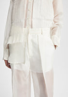 Crafted from 100% silk organza, this lightweight shirt features pleated applique panels that add subtle structure and an origami like effect. Its refined silhouette pairs effortlessly with the Ecole Organic Silk Cropped Trousers, offering a cohesive, elevated set for occasional wear.