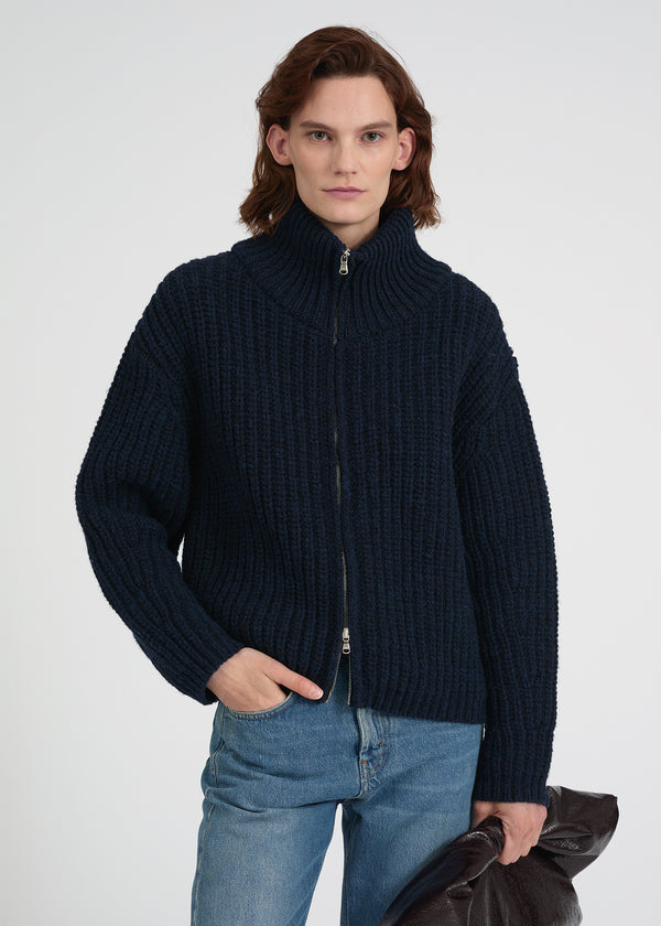 Polo-neck Knit Cardigan