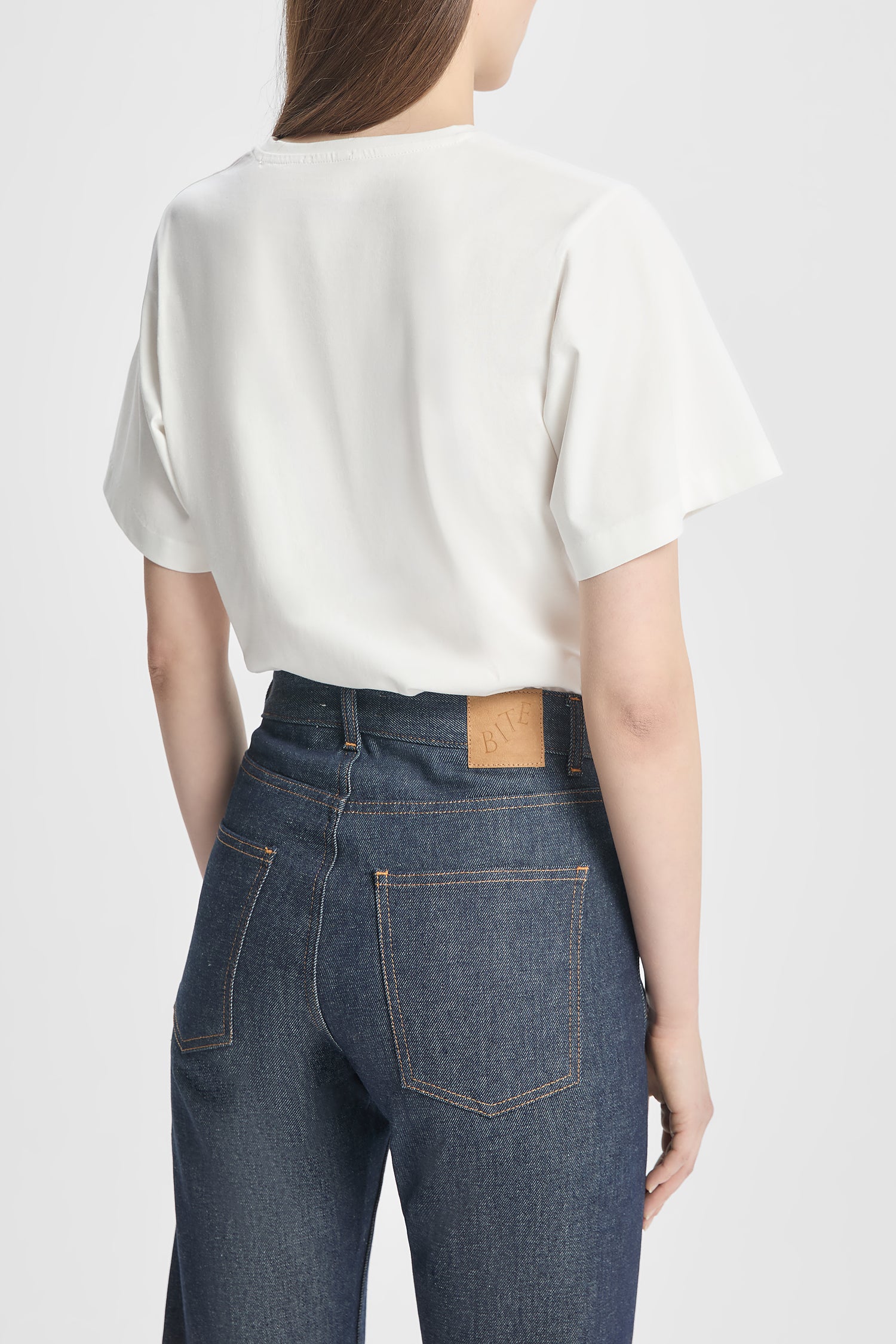 The BITE Signature Tee is a relaxed t-shirt crafted from organic cotton, featuring a rounded neckline, delicately sculptural sleeves, and a slightly shaped fit. This effortless piece combines comfort with subtle, refined lines to balance any outfit with ease.