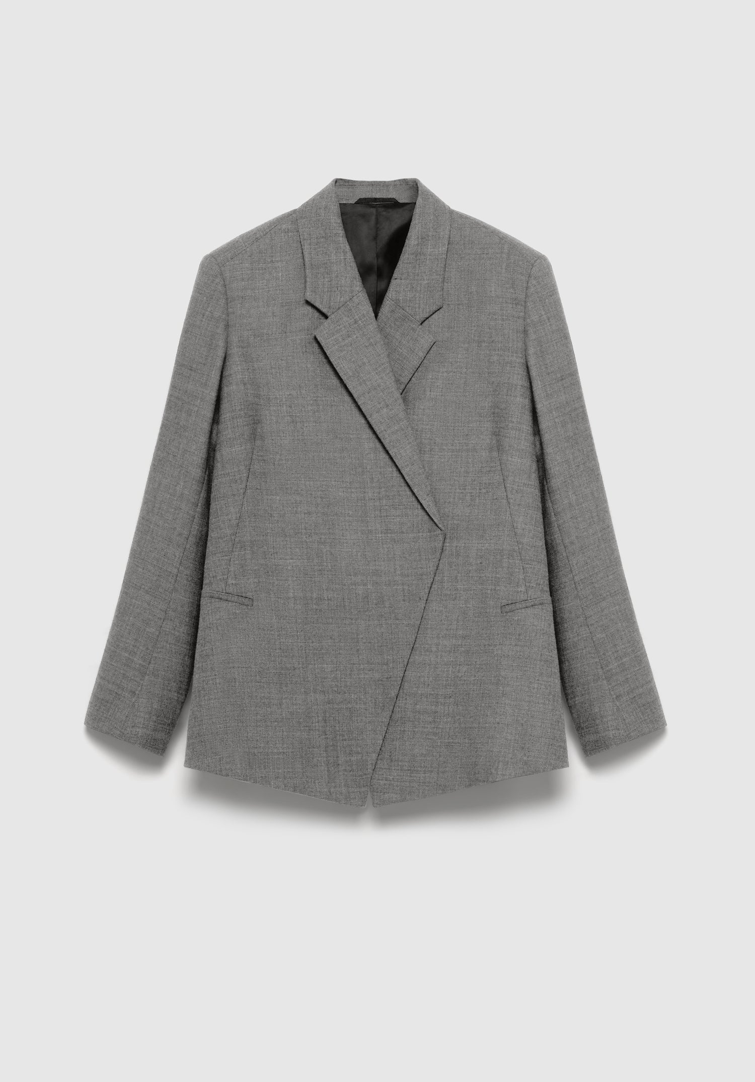 This Suit Jacket is a lightweight melange wool version of our signature Polus design. Featuring a classic tailored structure it is enhanced by a clean, no-button front that naturally closes into a sharp, modern silhouette, complemented by a subtly sculptural back. Pair it with the matching Credo Straight Melange Wool trouser for a sharp suit that effortlessly elevates your everyday style.